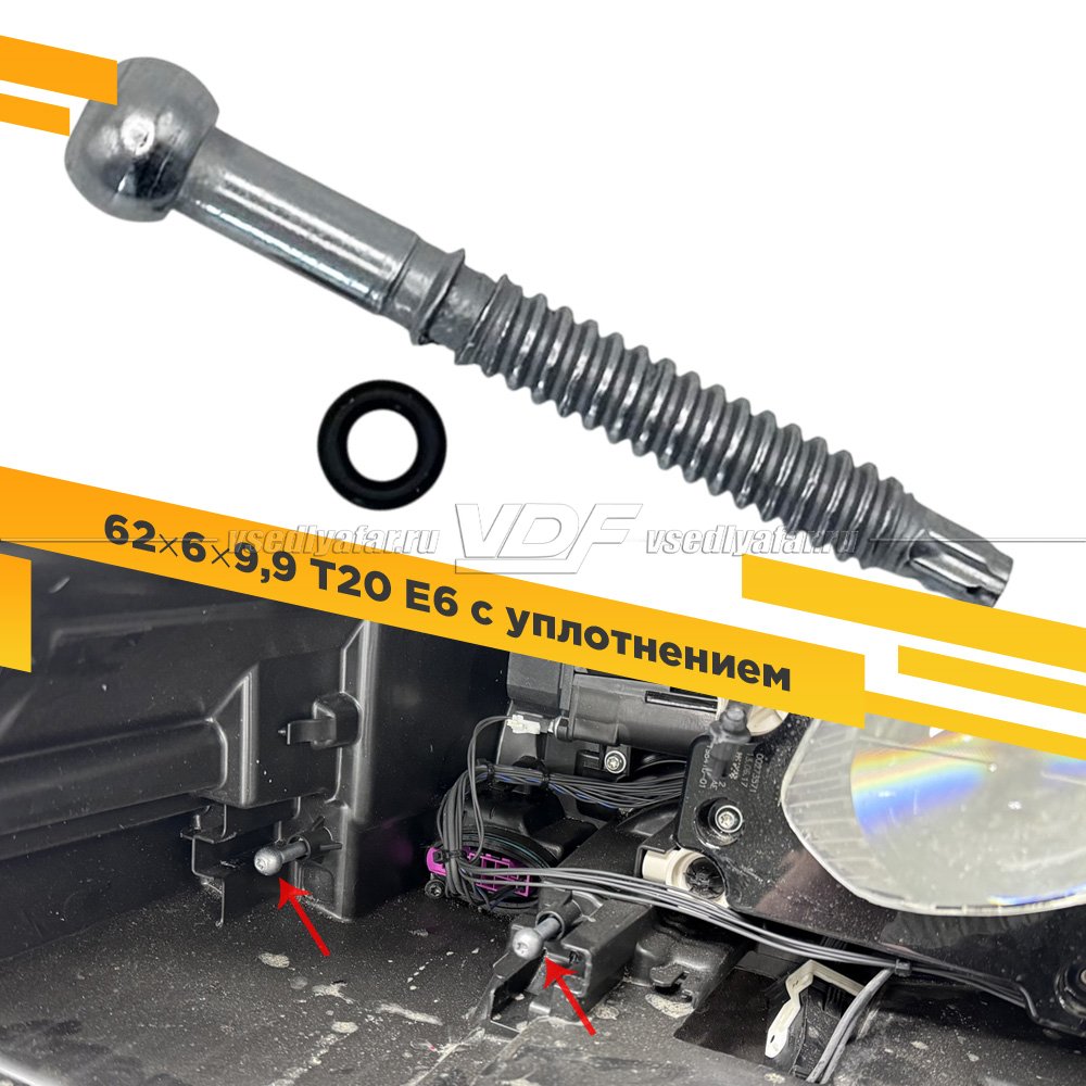 Регулировочный винт с шаровой головкой и уплотнительным кольцом предназначен для надёжного крепления линзового модуля в корпусе автомобильной фары и точной настройки светового потока. Используется в фарах с ручной или автоматической коррекцией, а также при ретрофите оптики.