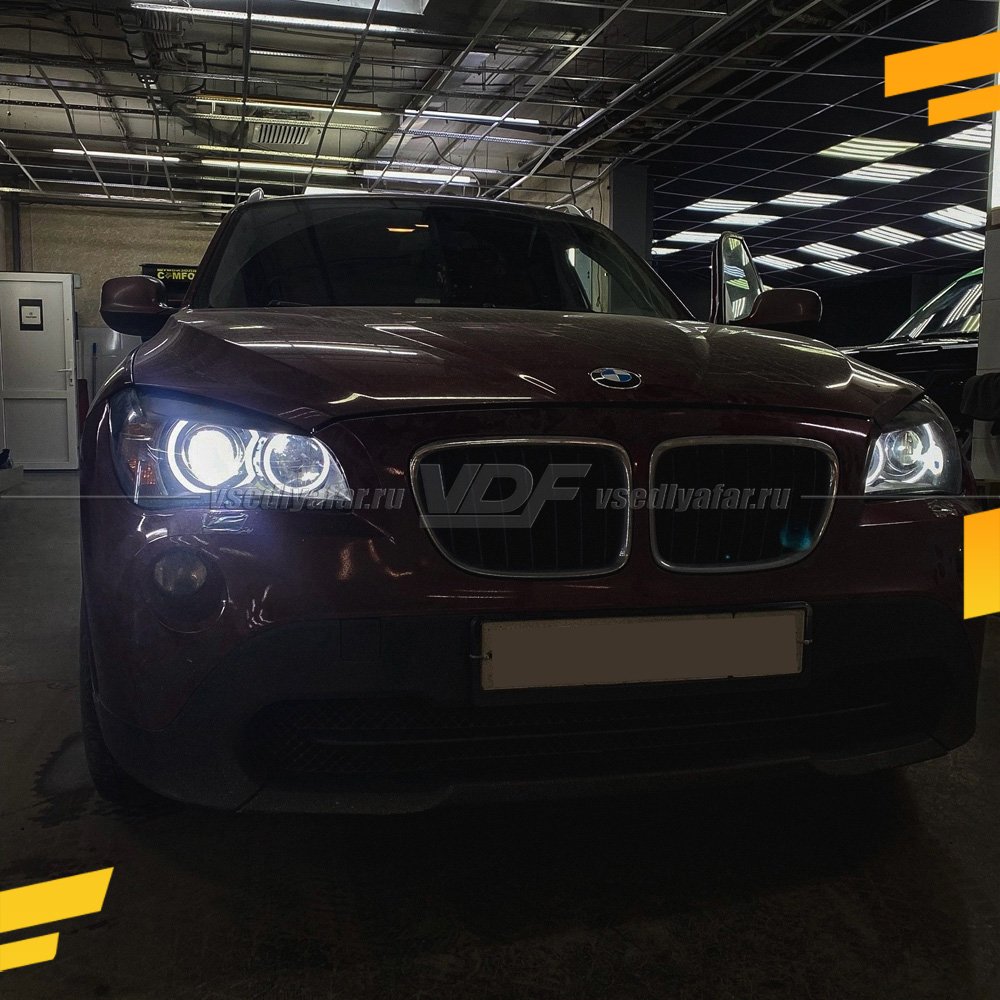 Светодиодные Ангельские глазки BMW X1 E84 (2009-2015) Рефлекторная оптика (Комплект на 2 фары)