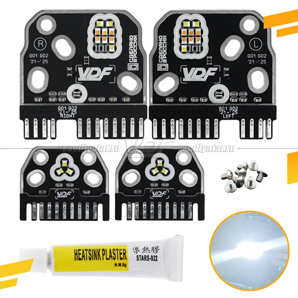 Плата отвечает за свечение световода (реснички) в фарах автомобиля BMW X4 G02 Это полноценное решение проблемы выхода из строя или тусклого свечения дневных ходовых огней (ДХО), вызванной перегревом и оплавлением штатного световода.