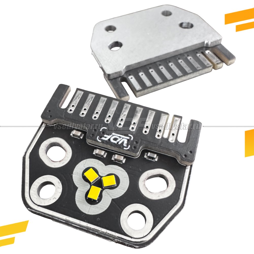 Идентичные параметры — форма, посадочные места и характеристики аналогичны штатным, но используется намного более качественный материал - алюминиевая подложка - лучше проводит тепло на радиатор.