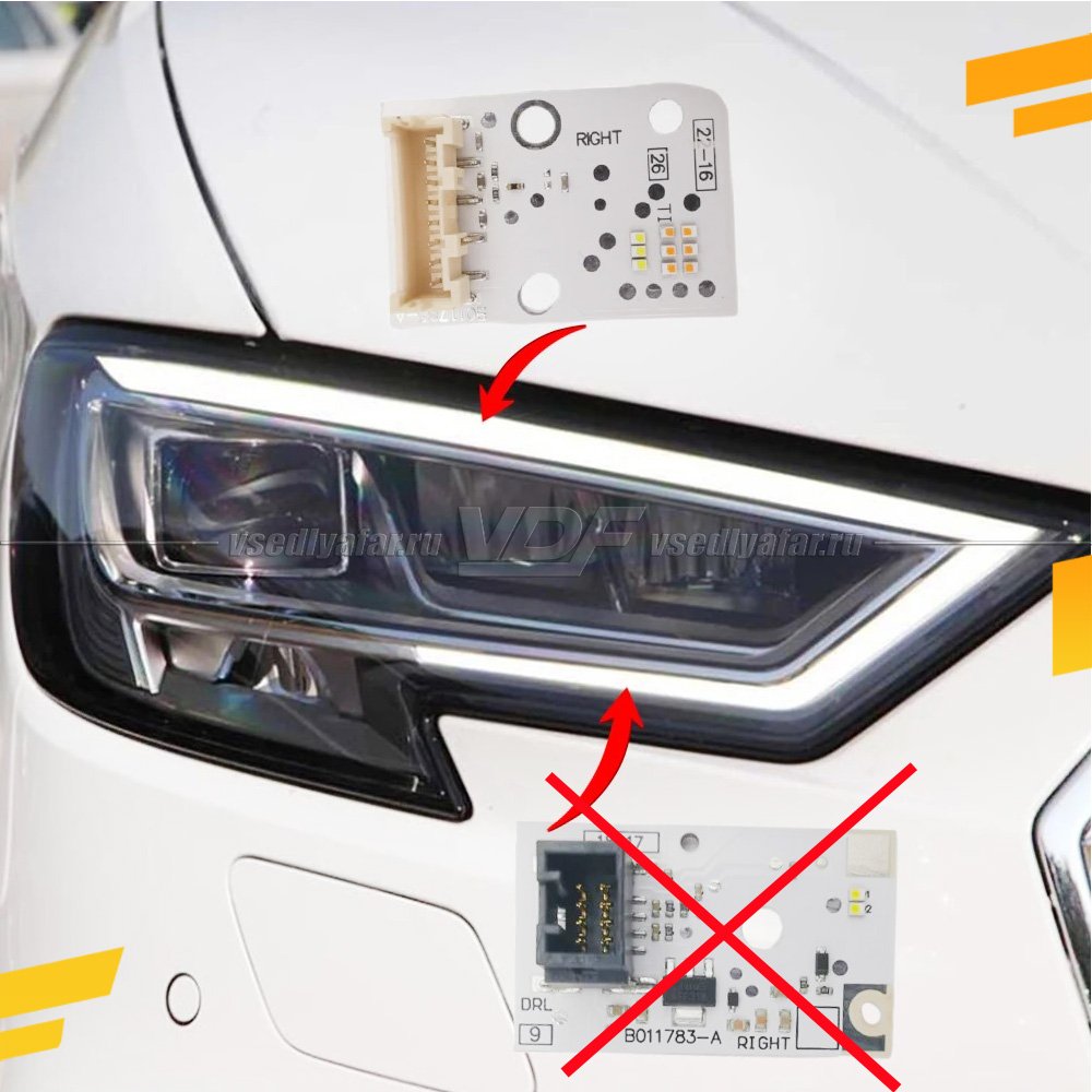 Решение проблемы выхода из строя и тусклого свечения ДХО в фарах Audi A3 8V