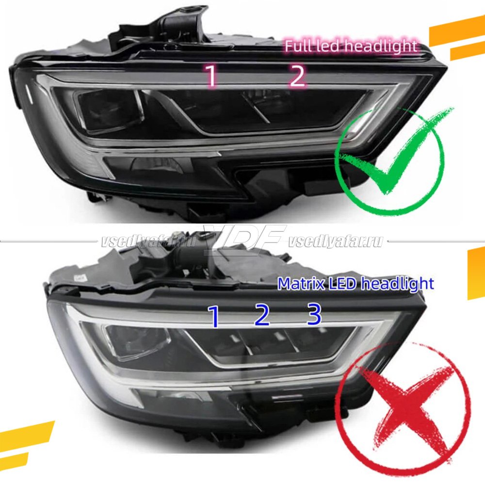 Применяемость: Audi A3 (8V) 04.2016 - 09.2020 (3 поколение, рестайлинг) Светодиодные фары (не подходит на матричные фары) только для фар как на фото к товару.