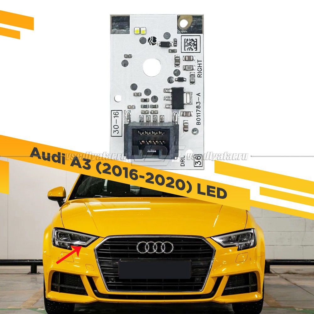 Применяемость: Audi A3 (8V) 04.2016 - 09.2020 (3 поколение, рестайлинг) Светодиодные фары (не подходит на матричные фары ) только для фар как на фото к товару.