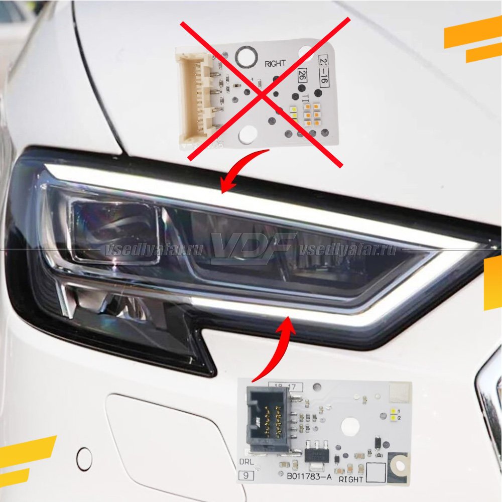 Решение проблемы выхода из строя и тусклого свечения ДХО в фарах Audi A3 8V