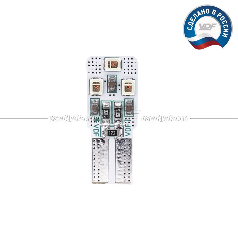 Светодиодные лампы VDF Light Foton W5W (T10) Красный Характеристики: Цоколь: W5W (T10) Цветовая температура Красный Размер идентичен штатной лампе W5W, T10. Мощность 1.5W; Световой поток 210 люмен; Построены на чипах LUMILEDS по три на каждой стороне Предусмотрены сквозные отверстия для более эффективного отведения тепла. Обманка CANBUS не предусмотрена. Размер: 28х11х5 мм. Страна производитель: Россия Гарантия: 2 года Внимание!!! Цена указана за 1 шт. Описание: Надежные, яркие светодиодные лампы VDF Light Foton T10 Для безопасности при движении в автомобиле в темное время суток или при недостаточной освещенности очень важно сообщать о маневрах на дороге. Светодиодные лампы Foton от компании VDF Light обеспечивают мощный свет и цветовую температуру, гарантируя улучшенную видимость габаритных огней при движении, а также отлично подходят для освещения салона автомобиля. Обеспечивают равномерное освещение в любых зонах использования: габаритных огней и дополнительного стоп сигнала. Благодаря равномерному расположению светодиодов с двух сторон лампы, получается широкий луч света, который равномерно освещает даже самые отдаленные места. Светодиодные лампы Foton VDF обладают стандартным цоколем W2.1x9.5d (W5W), благодаря чему замена осуществляется легко и быстро. Отличаются более длительным сроком службы, по сравнению с обычными галогенными лампами.