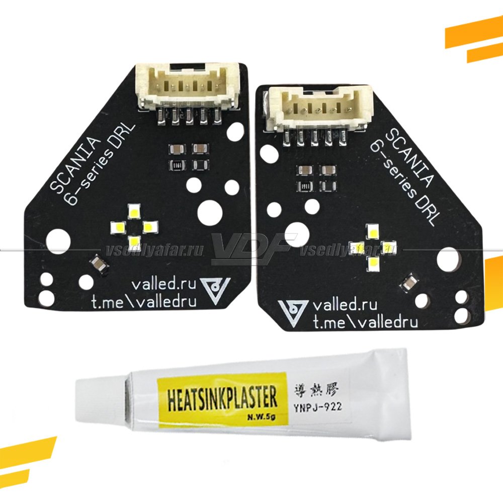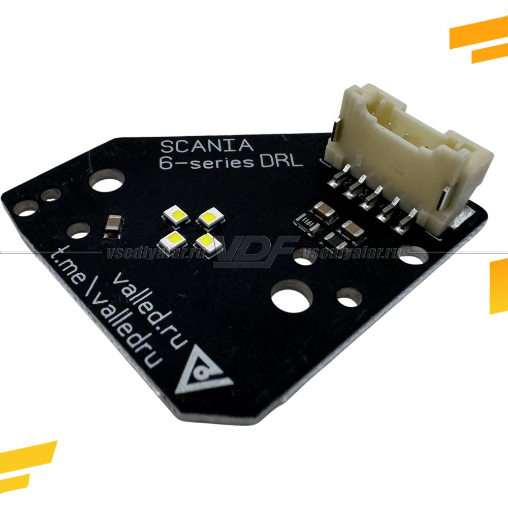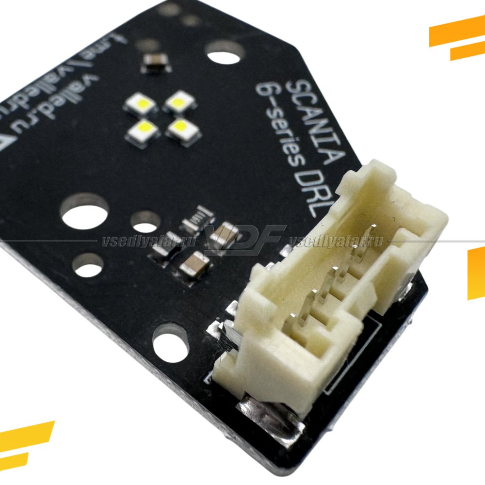Плата отвечает за свечение световода (реснички) в фарах грузовика Scania 6 (LED фары) 2016+. Это полноценное решение проблемы выхода из строя или тусклого свечения дневных ходовых огней (ДХО), вызванной перегревом и оплавлением штатного световода.
