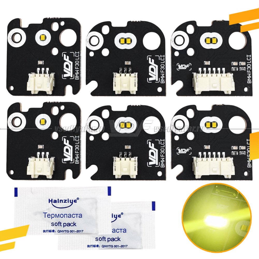 Комплектация: На 2 фары (6 штук), Термопаста.