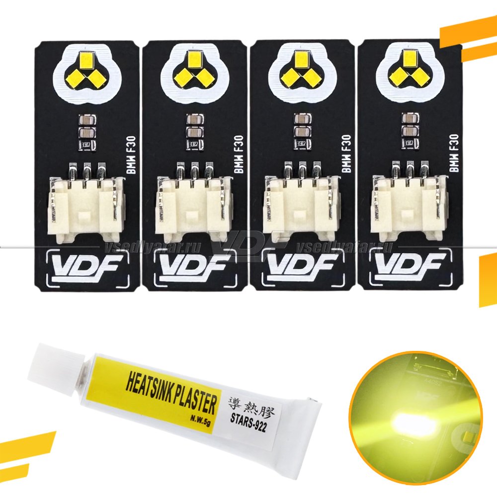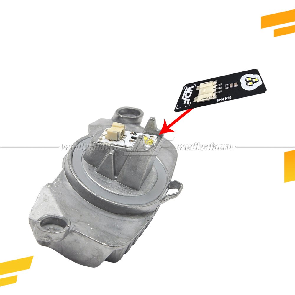 Плата отвечает за свечение световода (реснички) в фарах автомобиля BMW 3-Series GT F34 Это полноценное решение проблемы выхода из строя или тусклого свечения дневных ходовых огней (ДХО), вызванной перегревом и оплавлением штатного световода.
