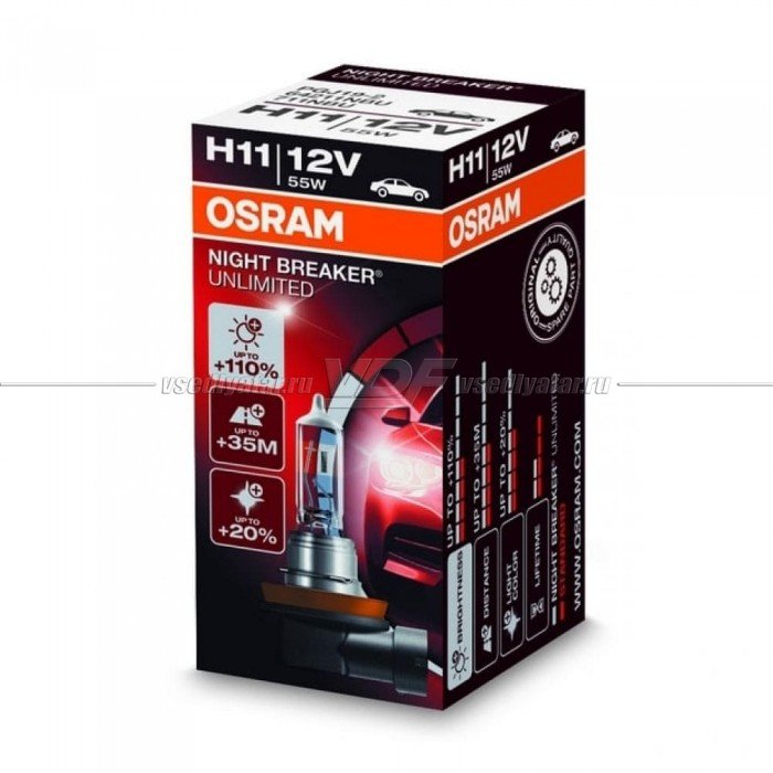 Лампа галогенная OSRAM H11 Night Breaker Unlimited 12V 60/55W, 1шт., 64211NBU