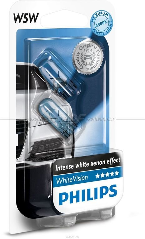 Лампа накаливания PHILIPS W5W White Vision 12V 5W, 2шт, 12961NBVB2
