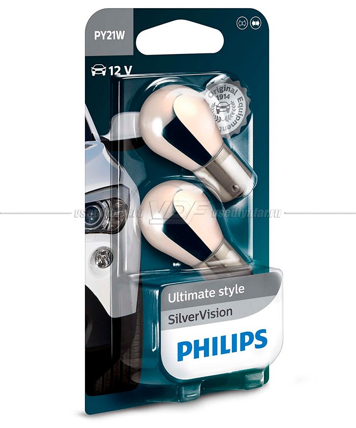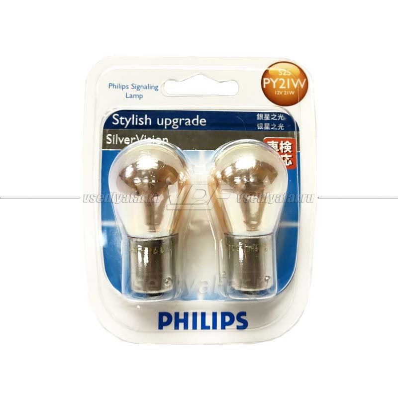 Лампа накаливания PHILIPS PY21W Silver Vision 12V 21W, 2 шт, 12496SV-B2