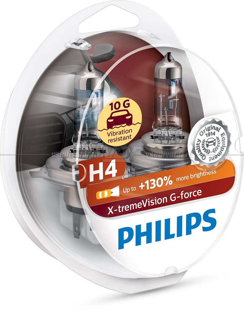 Лампа галогенная PHILIPS H4 X-treme Vision G-force 12V 60/55W (P43t) 2шт, 12342…