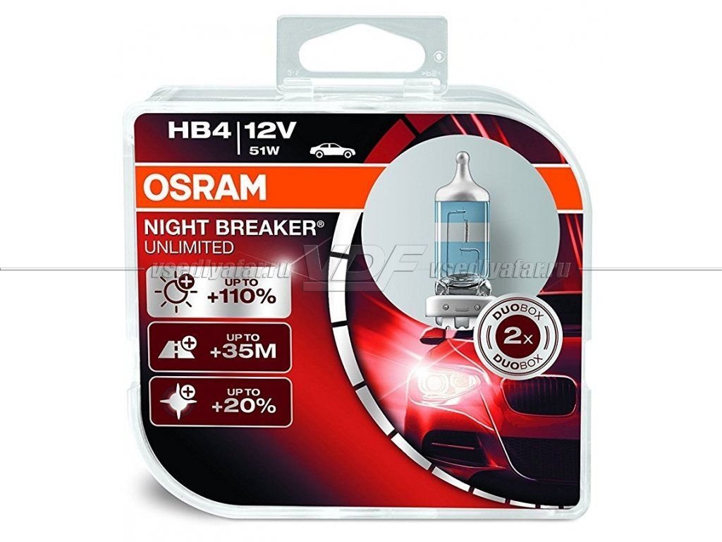 Лампа галогенная OSRAM HB4 Night Breaker Unlimited 12V 51W, 2шт., 9006NBU-HCB