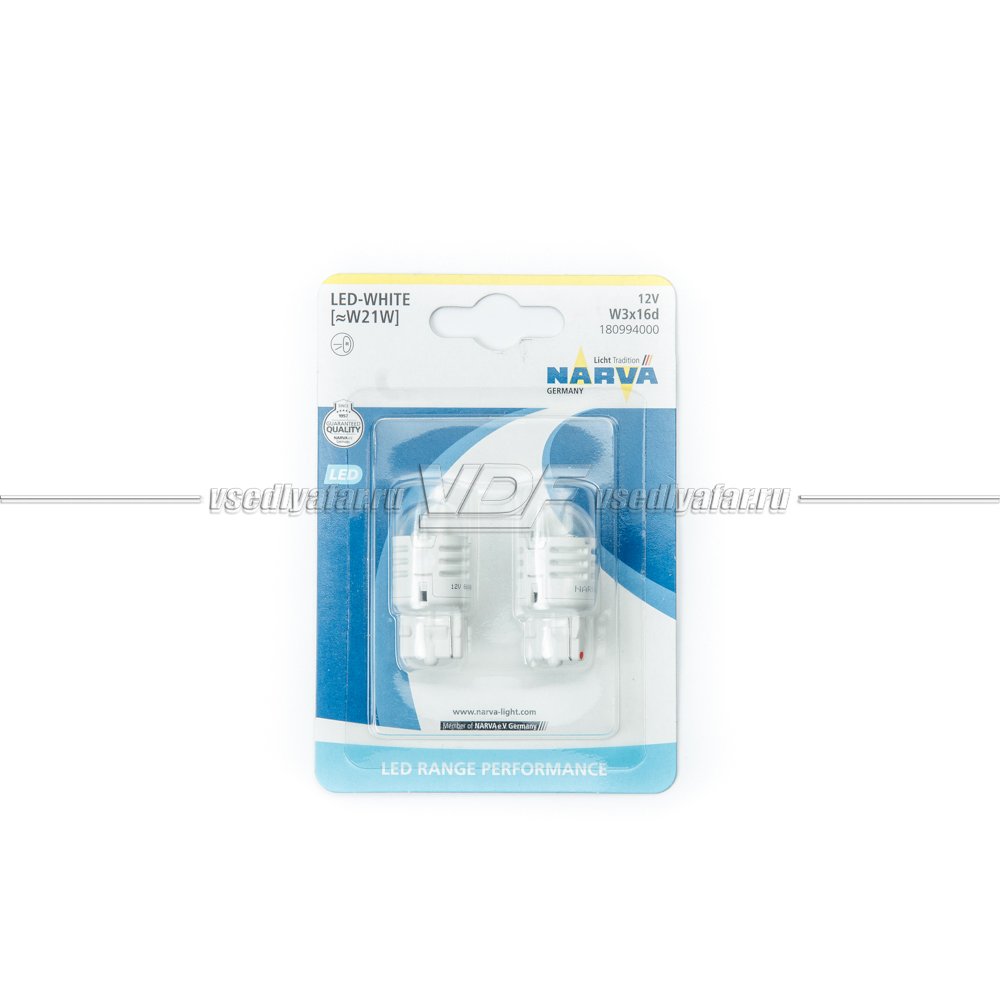 Светодиодные лампы NARVA W21W LED white 12V Range Performance LED (W3x16d) 6500…