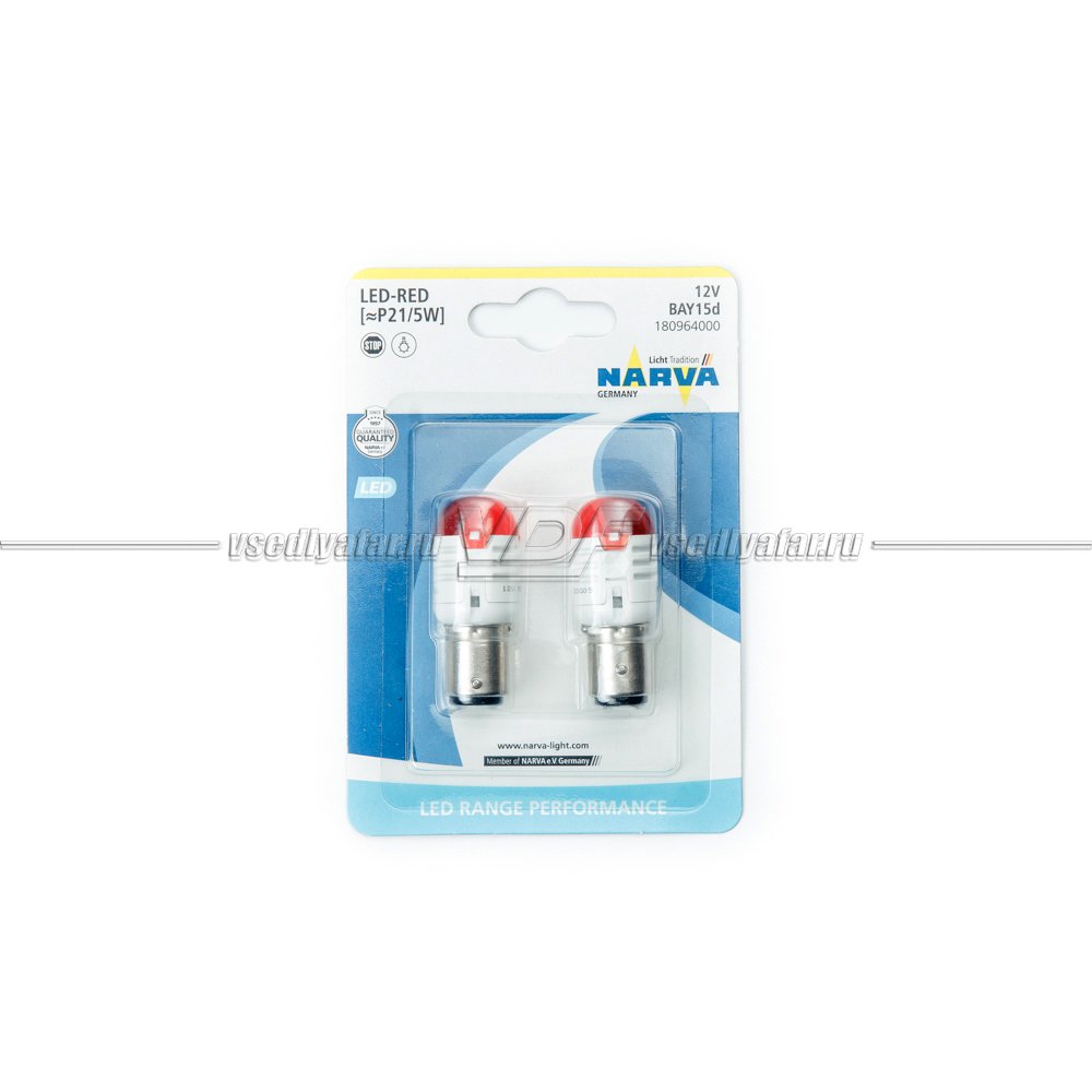 Светодиодные лампы NARVA P21/5W 12V Range Performance LED (BAY15d) RED 2шт, 180…