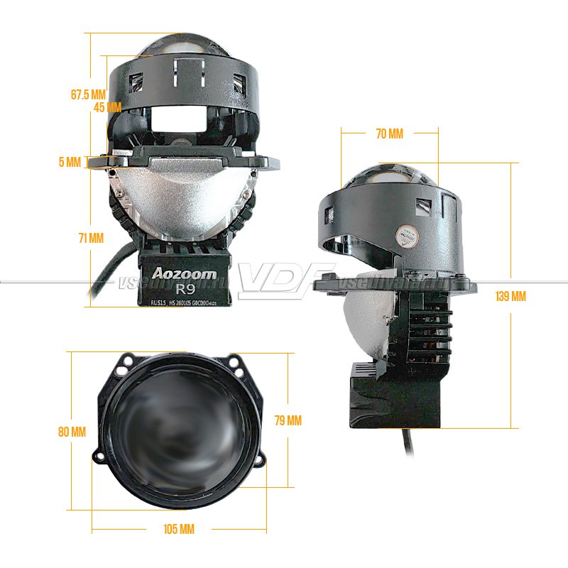 Светодиодные линзы Aozoom R9 3.0 12V 60/68W 5100/5400Lm