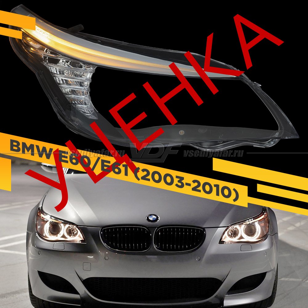 Уцененное стекло для фары BMW 5 E60 / E61 (2003-2010) Правое С LED ресничкой и …