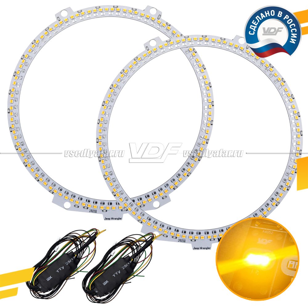 Светодиодные Ангельские глазки Jeep Wrangler 2018-2025 LED Цвет: Янтарный
