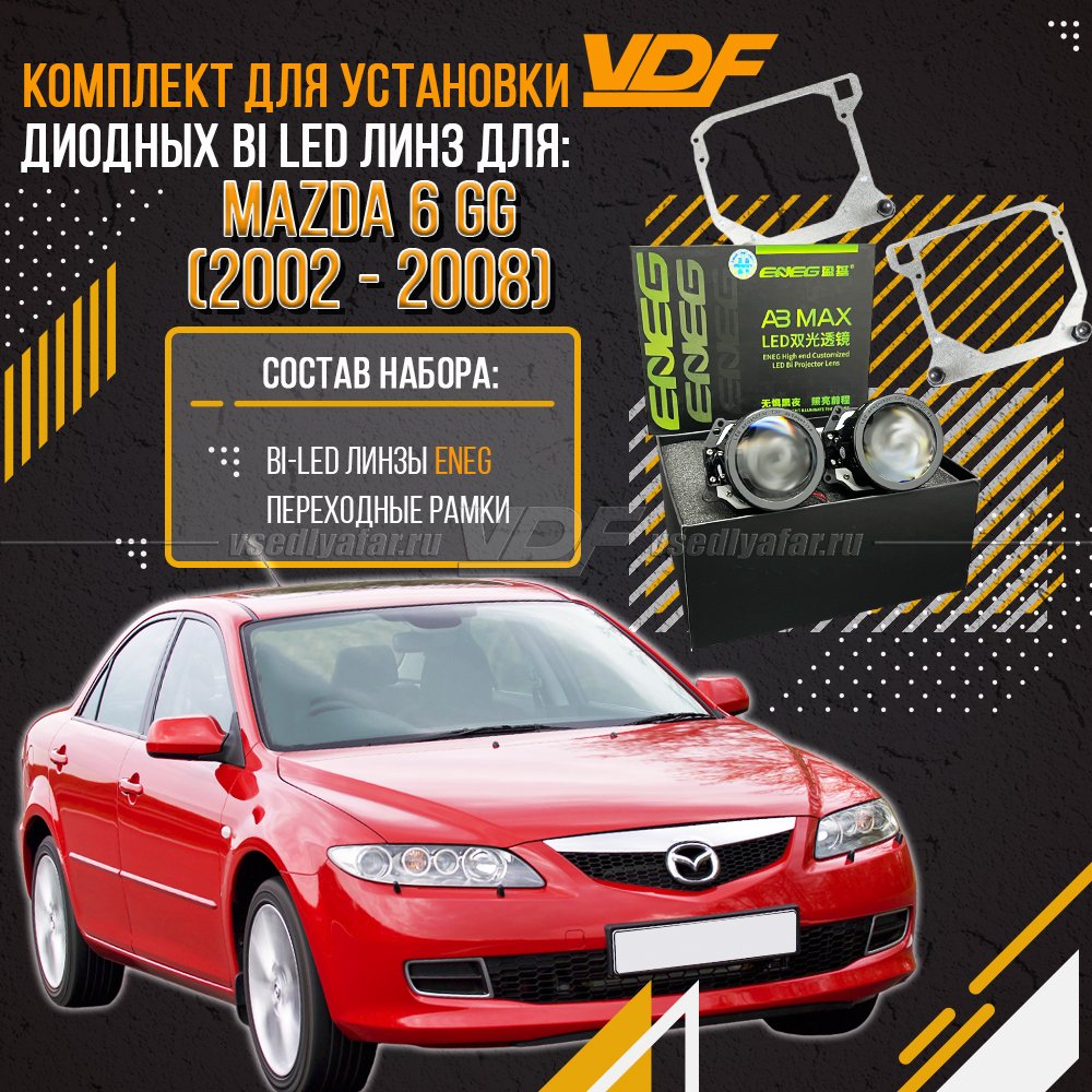Данный комплект специально предназначен для установки линз в фары автомобиля Mazda 6 GG,